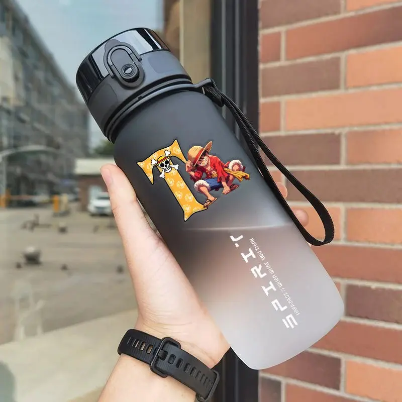 Gourde One Piece 800ml Lettre A-Z – Bouteille d’Eau Anime Luffy Enfant avec Paille