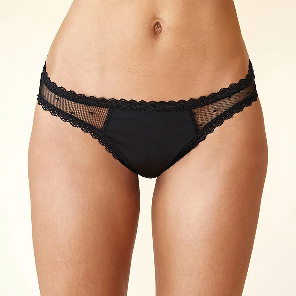 Notre culotte de règles ressemble à une culotte normale sauf qu’à l’entrejambe, caché à l’intérieur même de la culotte, il ya du tissu technologique ultra absorbant qui draine le liquide vers l’intérieur faisant ainsi office de protection périodique.