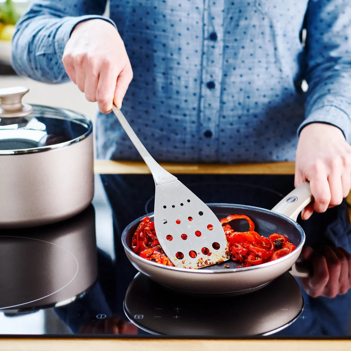 La collection Cambridge Bronze apporte de la magie dans la cuisine. Le revêtement antiadhésif sain en céramique Thermolon, renforcé par des diamants, est facile à nettoyer, garantit un confort de cuisson supplémentaire et résiste aux spatules en métal.