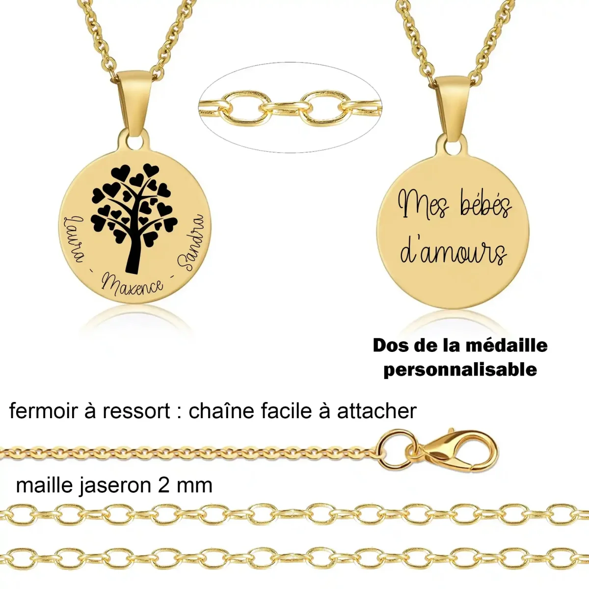- Chaîne assortie en acier inoxydable ou plaqué or