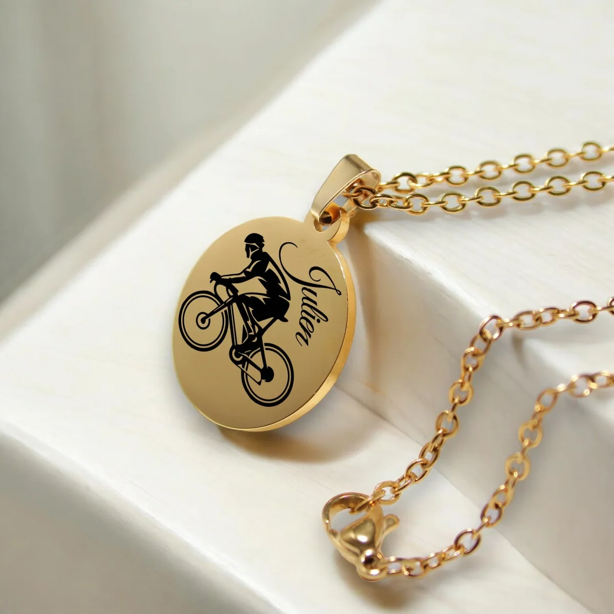 En somme, ce collier cycliste personnalisé est un hommage à la persévérance, à la passion du sport et à la liberté que procure le vélo. Grâce à sa gravure unique, il devient un accessoire chargé de souvenirs et de motivation. Commandez dès maintenant et pédalez vers de nouvelles aventures en portant fièrement votre passion au cou !