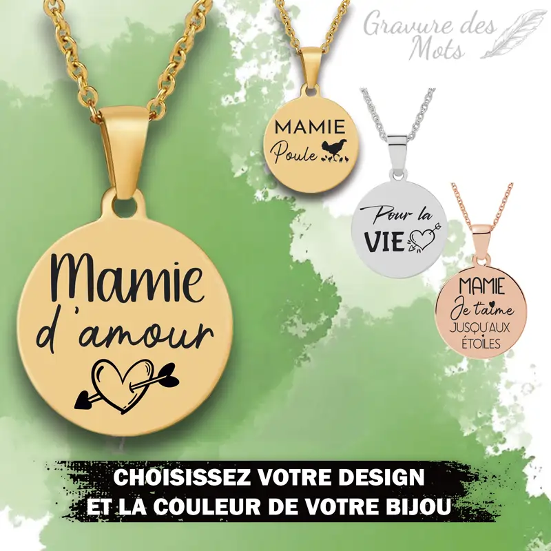 Collier Mamie Personnalisé : Gravez Votre Amour sur une médaille