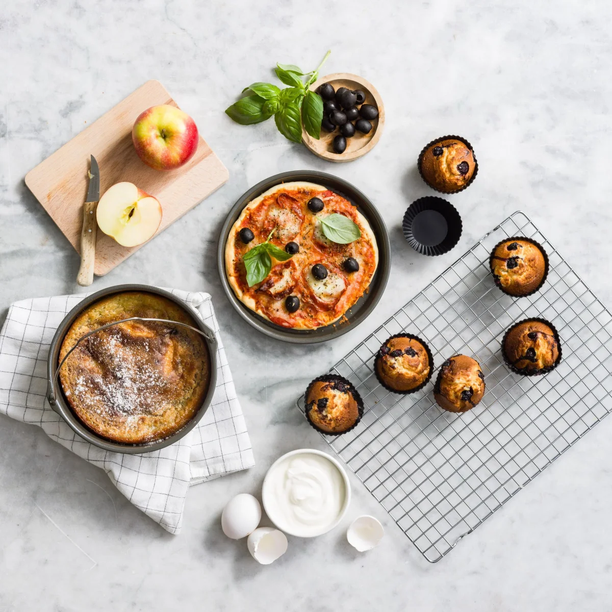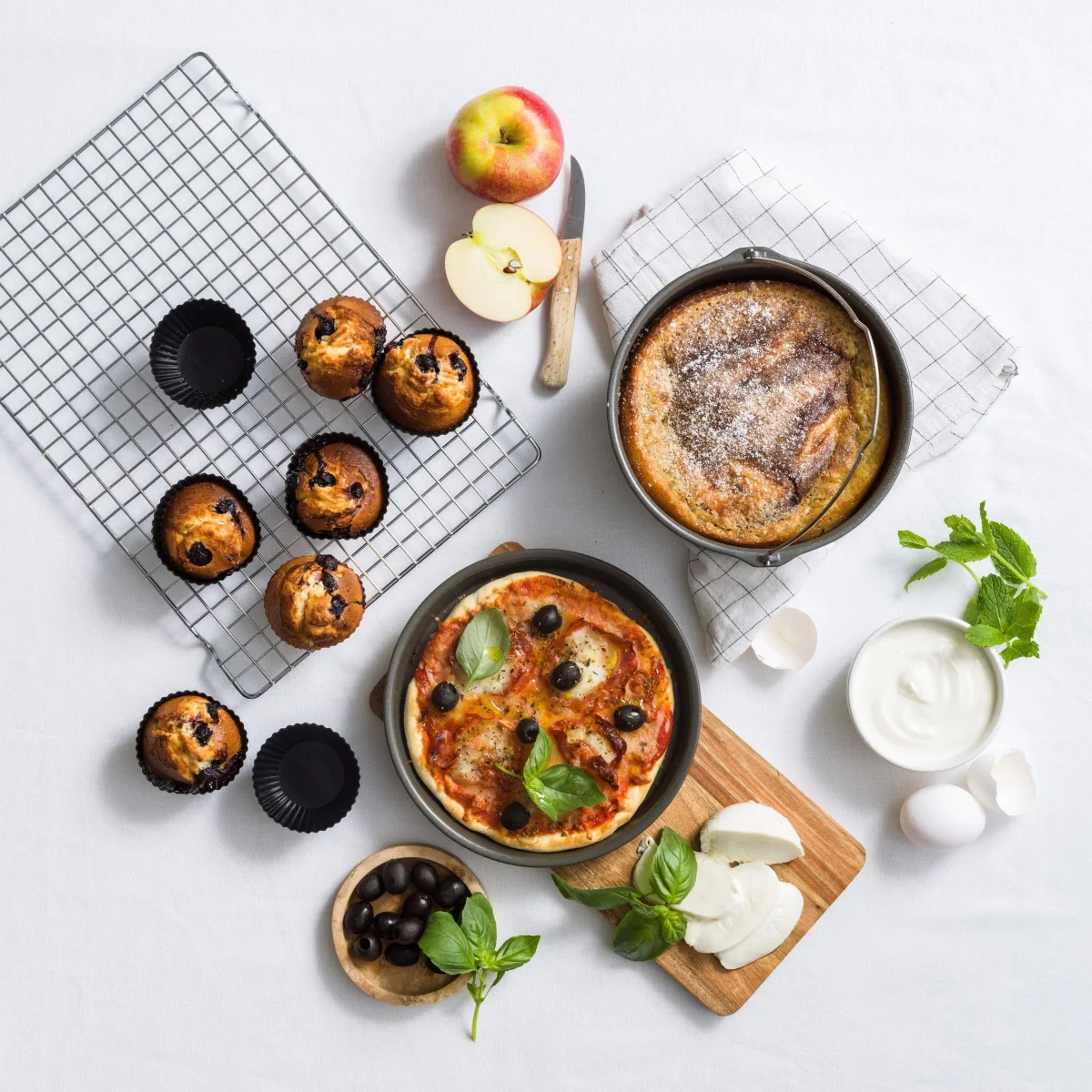 L’ensemble de cuisson de 8 pièces GreenPan Air Fryer Accessories vous aide à tirer le meilleur parti de votre air fryer. L’ensemble contient un moule à pâtisserie, un moule à quiche et à pizza et 6 moules à muffins. Parfait pour préparer une variété de plats au four, tels que des lasagnes ou des moussakas, ainsi que des quiches, des pizzas, des gâteaux, des tartes, du pain et des muffins.