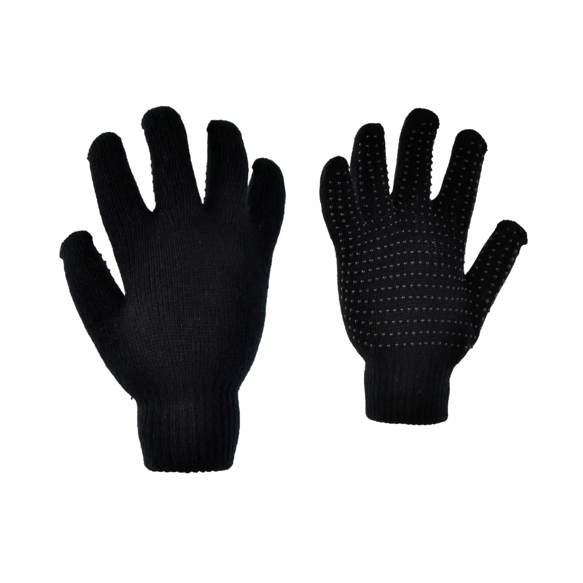 Trio de gants en tricot acrylique, disposant d’une paume recouverte de points de PVC favorisant l’adhérence et d’un poignet en tricot élastique