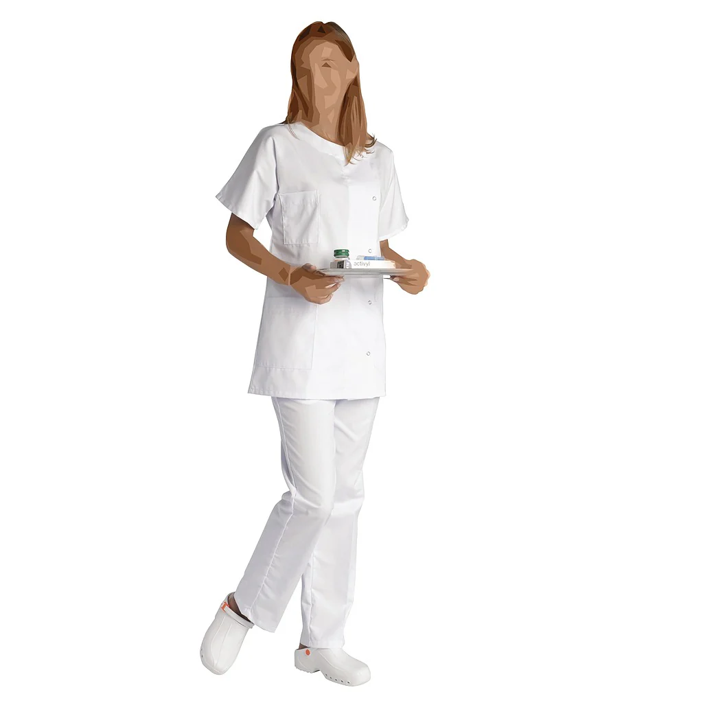 La tunique SNV est conçue pour les gynécologues, les sages-femmes, les professionnels de santé en milieu médical. La tunique est à manches courtes. Très pratique, elle possède trois poches : une poche située au niveau de la poitrine, deux poches basses dans la couture.